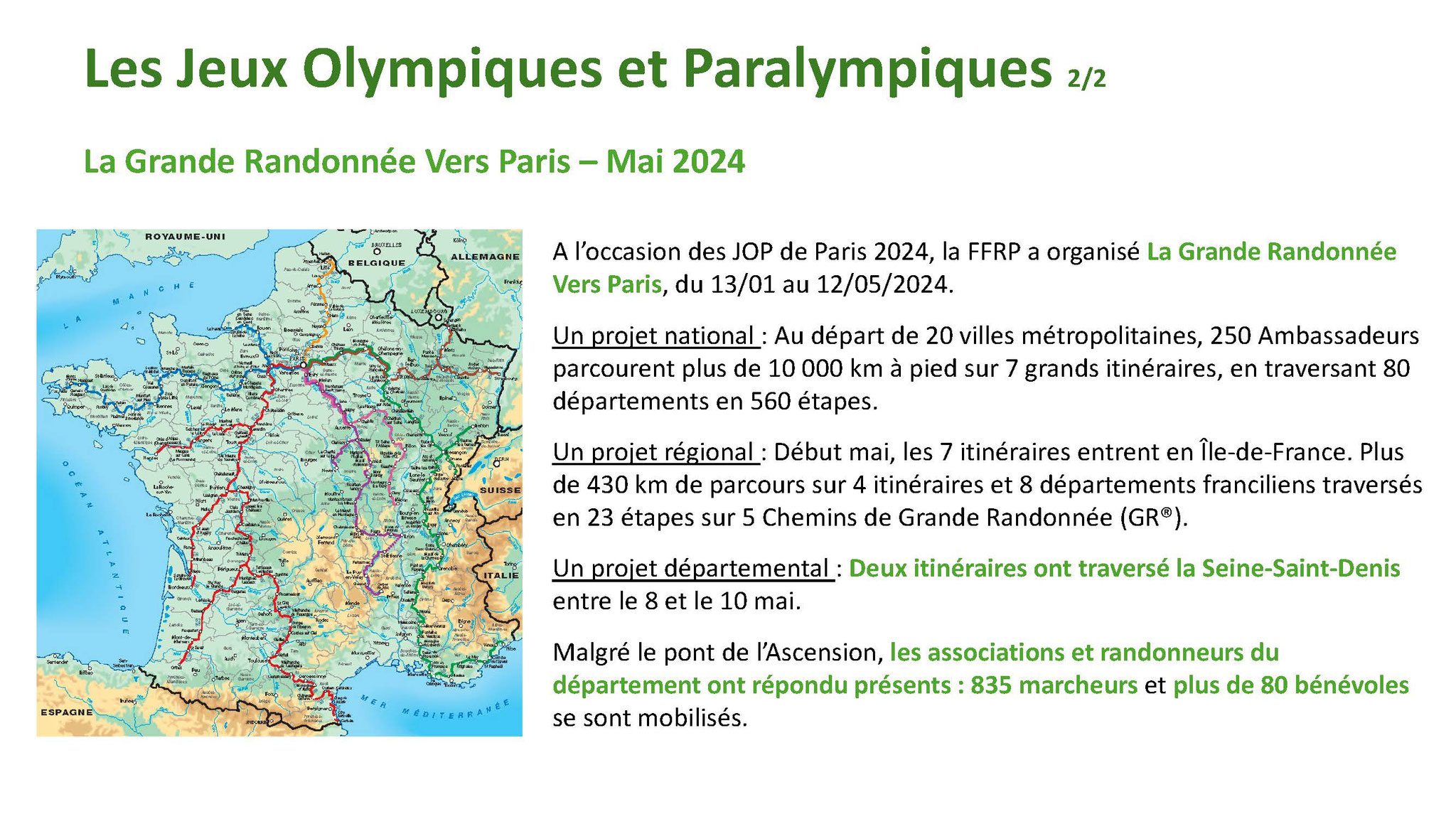 Un fil rouge a été pensé et réalisé, afin que tous les PR (promenades & randonnées) du département soient empruntés en y associant les clubs. Ainsi les associations de randonneurs ont pu parcourir 40 km (ou moins selon leur programme), au départ de leur ville pour un regroupement final et collectif au Parc du Sausset le 5 avril.